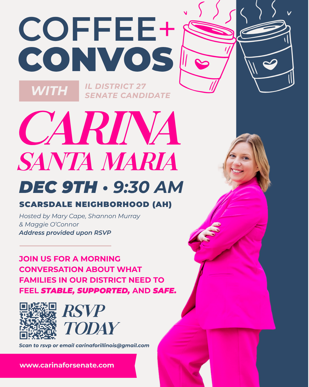 Join us for a morning of impactful conversation with Carina Santa Maria, candidate for the Illinois State Senate (District 27).